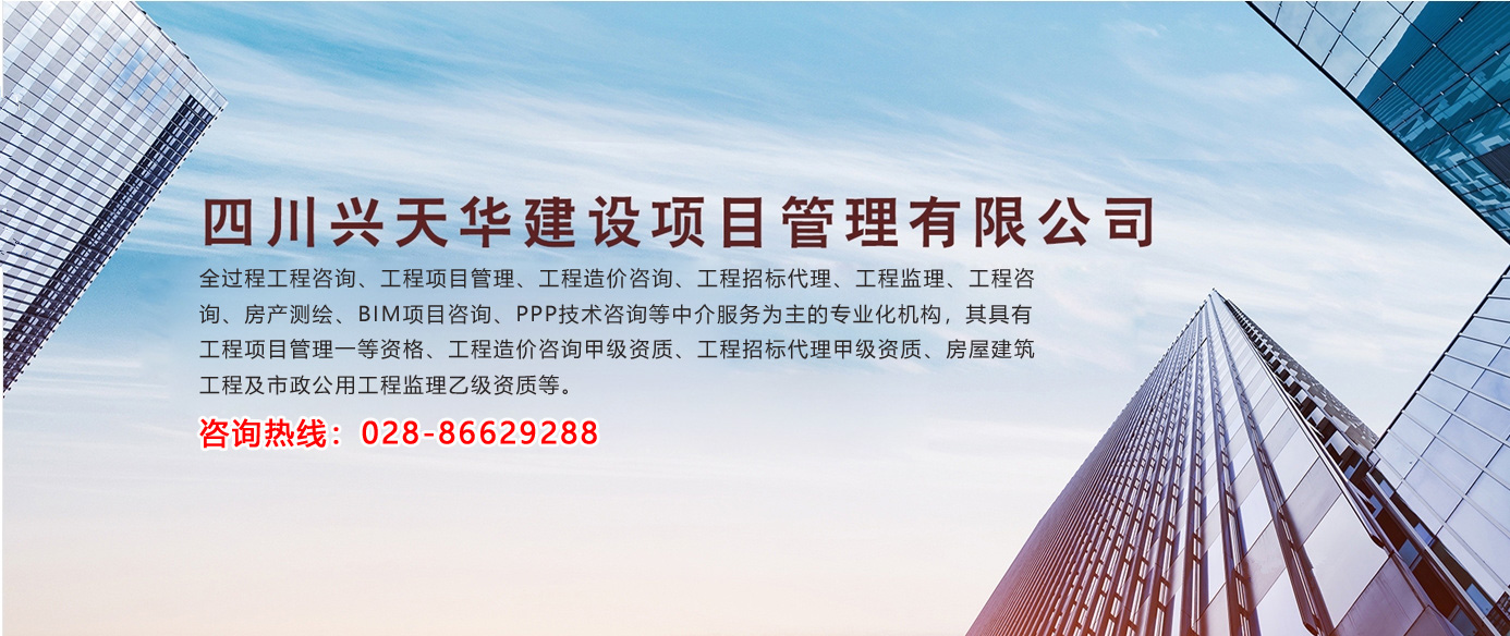 四川興天華建設(shè)項(xiàng)目管理有限公司(原名四川天華工程造價咨詢事務(wù)所有限公司)成立于2003年12月,是一家以全過程工程咨詢、工程項(xiàng)目管理、工程造價咨詢、工程招標(biāo)代理、工程監(jiān)理、工程咨詢、房產(chǎn)測繪、BIM項(xiàng)目咨詢、PPP技術(shù)咨詢等中介服務(wù)為主的專業(yè)化機(jī)構(gòu),其具有工程項(xiàng)目管理一等資格、工程造價咨詢甲級資質(zhì)、工程招標(biāo)代...